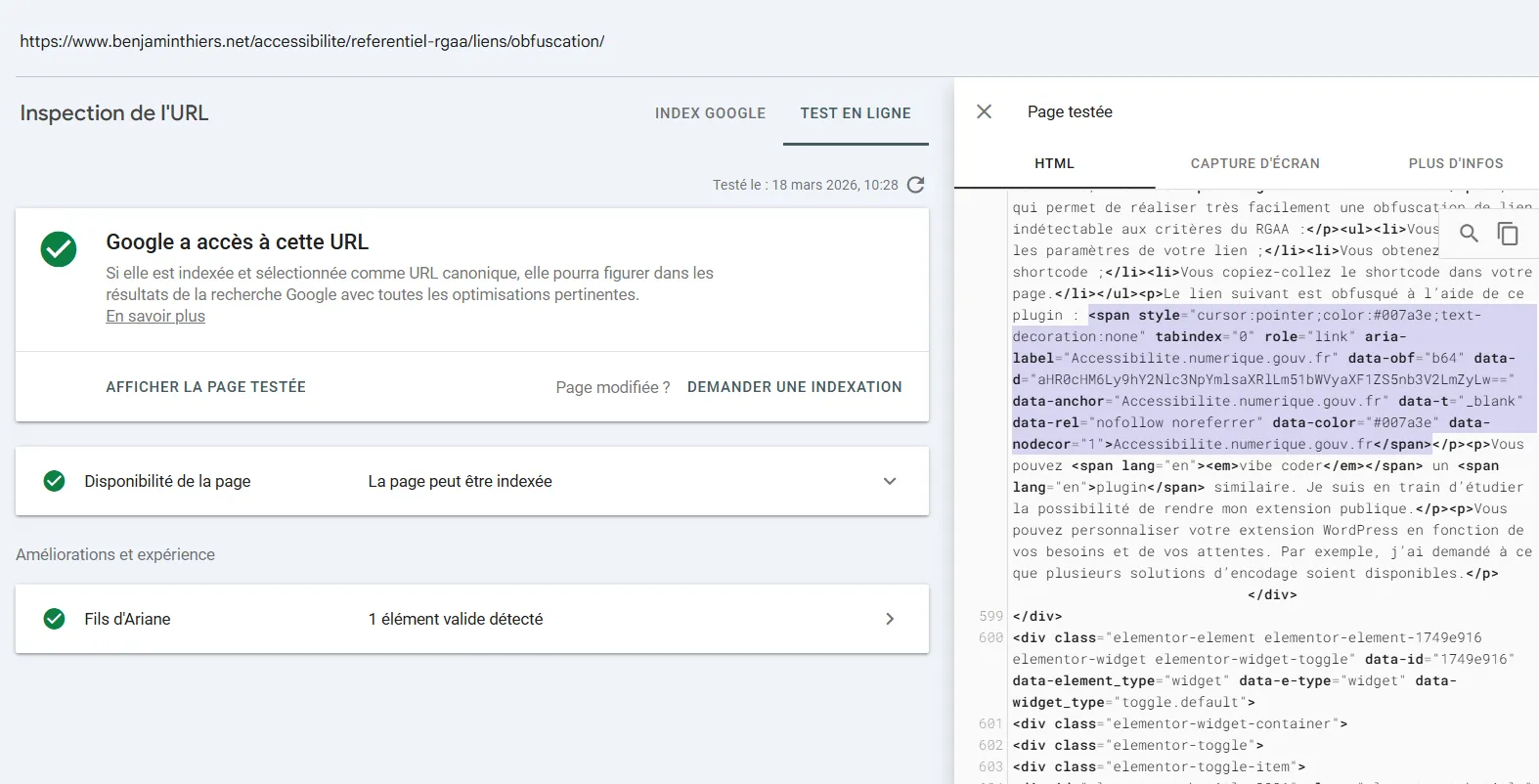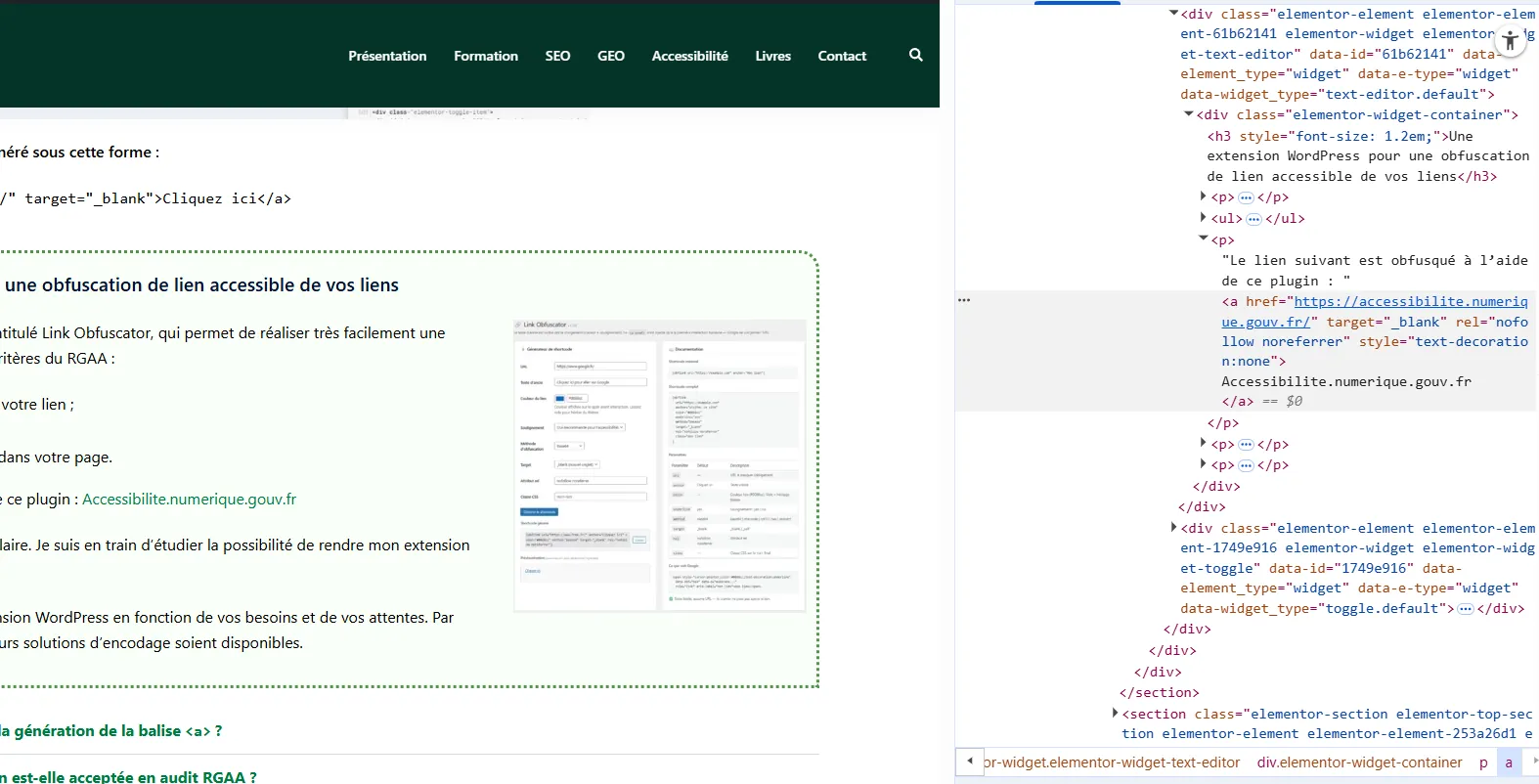 Le lien suivant est obfusqué à l’aide de ce plugin : Accessibilite.numerique.gouv.fr
